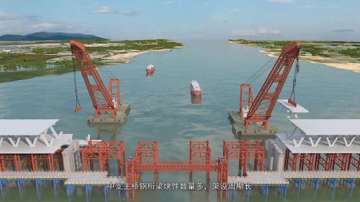 但大田影视偏能把这份工程硬核,转化成可视化的科技酷感。以 BIM 模型为主线,项目六大智能建造系统,全被揉进了生动画面里,没有枯燥参数堆砌,只剩一眼就能 get 的技术亮点。数字孪生沙盘首当其冲,相当于给整个工地装了 “上帝视角”,依托 BIM+GIS 融合建模,不仅还原了项目全景,还细分出南支斜拉桥、中支钢桁梁桥两大场景,地质数据、构件信息、施工进度一键切换调取。原本各部门要反复开会对接的信息,现在靠动画就能同步,协同效率大概能翻番,还能提前模拟施工方案,规避潜在偏差。